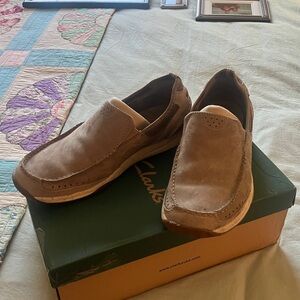 Mens Northface size large 100% nylon hiking/casual pant. Dark camo green color. Button flap back pockets. Button flap front pockets and side slash pockets. Elastic sides on waistband with belt loops. Excellent condition