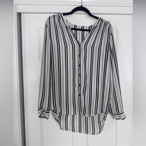 I only wore it one time in 2022. It’s a “no name brand” dress, chiffon fabric. The waist has a stretch to it, but the material itself is not stretchy. No tags. I think it’s a medium. But runs small!
