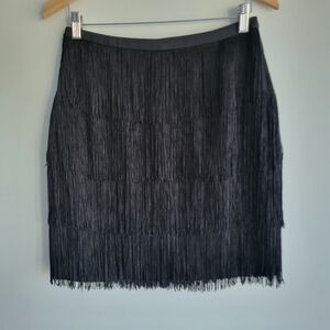 Lauren Ralph Lauren black tiered fringe skirt "addie". Lined, hidden side zipper. Flapper style.
