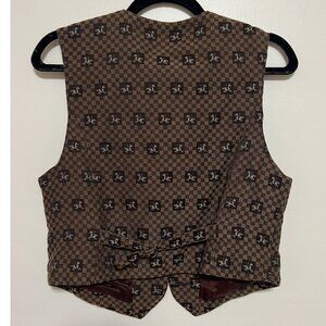 Lizsport Vest Equestrian on Horse Brown Check Button Down Lined Poly/Cotton 10