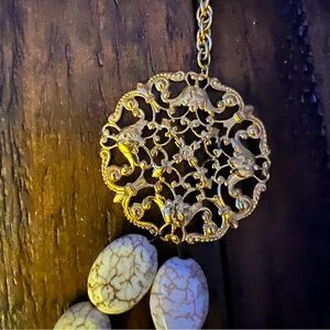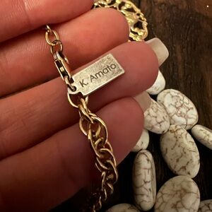 K Amato White Stone and Gold Tone Filigree Necklace Chic Bold Statement