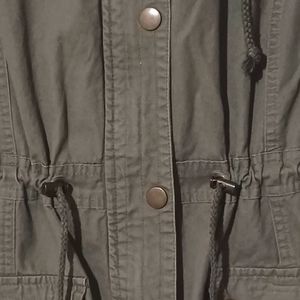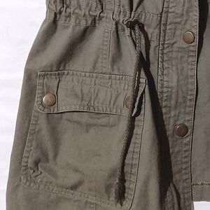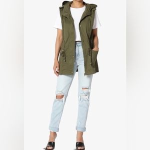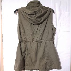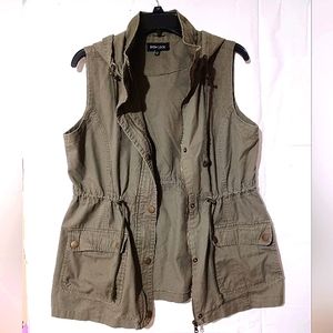 NEW LOOK Military Utility Hood Sleeveless Drawstring Distress Cargo Jacket EUC