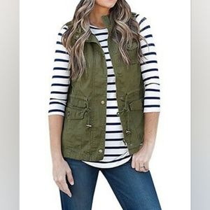The hooded NEW LOOK Utility Vest jacket can be as warm or as cool as you need it to be. Trendy distressed lived-in vibe. Khaki olive army green. Keep It comfy with sneakers & You’re Ready To Roll