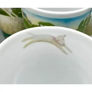 In a quaint countryside where hills roll gently and sheep frolic merrily, these ceramic mugs bring pastoral charm to your morning routine. Crafted with delightful artistry, each sip transports you to a serene, idyllic landscape. Department 56 by Judith Glover’s whimsical design captures the heart of rural living, making each moment memorable. Like new condition, no damage.