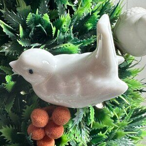 Porcelain Dove Bird Ornaments Two Clip on Christmas Tree Holiday Home Decor