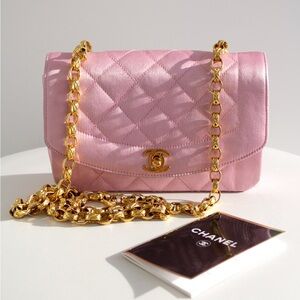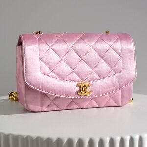 Chanel Vintage Pink Quilted Satin Mini Diana 24K Gold Bijou Chain 90s Flap Bag