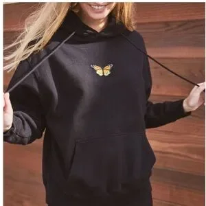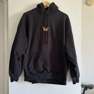 Brandy Melville Black Cotton Butterfly Hoodie Classic Neutral Sweatshirt size S