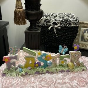 Approximately 16.5”l x 6”h. Pretty glittery letters spell Easter. Please review pictures to determine condition as this was pre-lived. Listings priced below $15 are firm unless added to another listing/s to create a bundle. (Up to 5 lb. Pkg.)