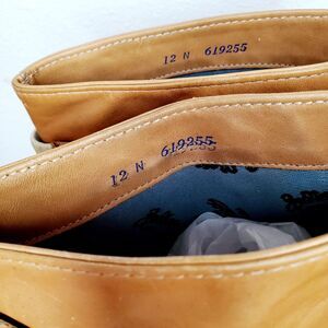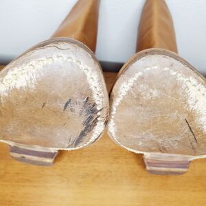 Overall marks to the leather, dark marks to the heels, chips to the toe soles and the interior lining soles are crumbly.