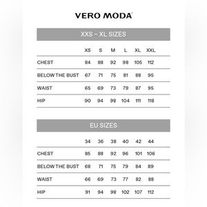 Size guide for Vero Moda included (in centimeters)