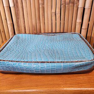 Samantha Brown Croco Cosmetic Case w/removable inserts Aqua/Camel NEW