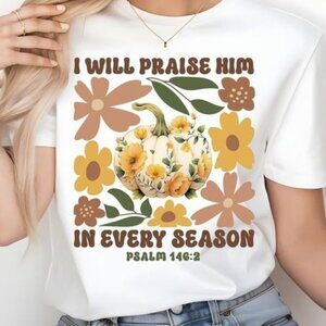 I Will Praise Him In Every Season Shirt, Floral Pumpkin Graphics Shirt