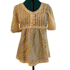 Antilia Femme Top Button Up Pleated Bust Gathered Sleeve Back Tie Size Medium