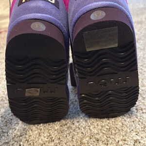 Three tones of purple suede combine to make these warm, shearling-lined boots. Crochet trim, rubber sole. Shearling/leather/wool. Imported. Euro whole sizes 36-41. 36 (US 5), 37 (US 6), 38 (US 7), 39 (US 8), 40 (US 9), 41 (US 10).
