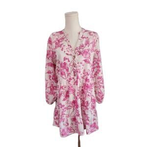 Tie front closure Striped print Midi length V neck 3/4 sleeves Tie at bodice