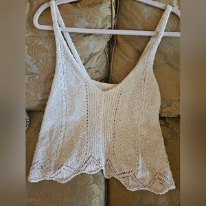 NWOT Anthropologie V-neck Pointelle Sweater Tank Ivory/ Multi MarbleLinen