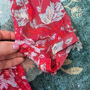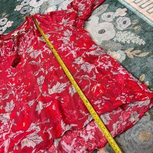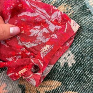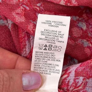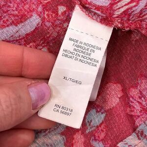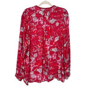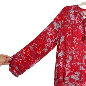 Lucky Brand Blouse Women's XL Red Split Neck Floral Long Sleeve Peasant Top Boho