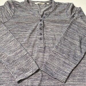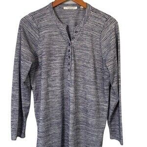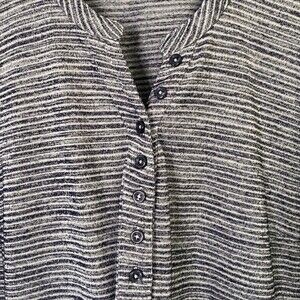 Cyrus Striped Henley Navy Tunic Top High Low Hem Long Sleeve 1/2 Button Front