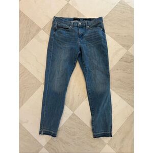Zara Dark Wash Blue Denim Cropped Jeans Raw Hem Size 12