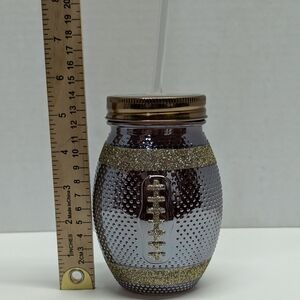 Glittery Football Glass Mason Jar Tailgate Tumbler Cup with Lid & Straw