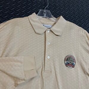 BYLT Grey Lux Drop Cut 3 Button Polo Mens Sz L Black & White Polkadot Collar