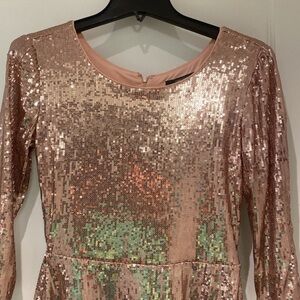 Pink sequin dress from Forever 21 with long sleeves. Falls upper to mid thigh. Polyester material. Hand wash cold. Worn once- like new.