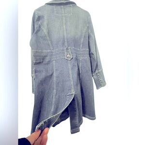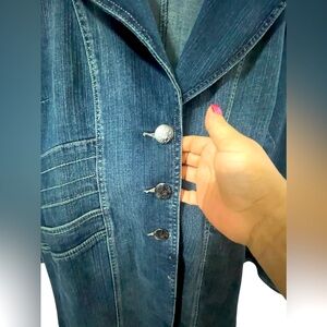 Gorgeous denim jacket, slit on back. 3 button down front of jacket.