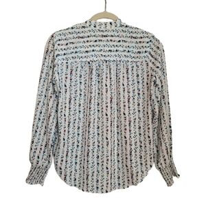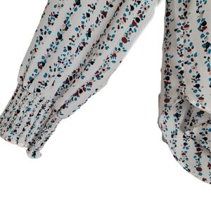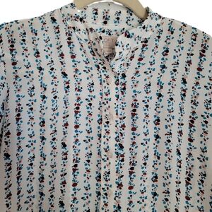 Loft Blouse XXSP Petite White Floral Long Sleeve Henley High Low
