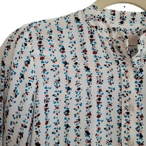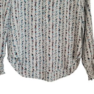 Loft Blouse White Floral Long Sleeve Henley High Low