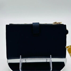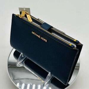 Michael Kors Large Double Zip Wallet Wristlet Navy Blue/Gold