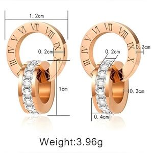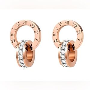 NWT Classic Roman Numeral Crystal Earrings Rose Gold Stainless Steel