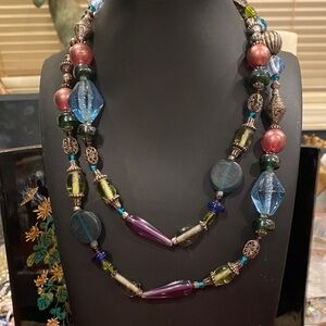 8 Strand All Metal Brushed Gold Bow Necklace. Great For Christmas Dress Ups