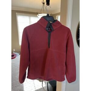 LL Bean Jacket Womens M Red Long Sleeve 1/4 Snap Sweater Fleece Pullover