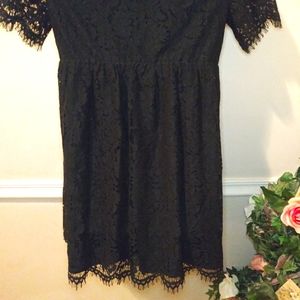 NWT Beautiful and timeless, classic black floral lace maternity dress with sheer sleeves and elastic empire waist, from GAP's Holiday 2019 collection. Dress is lined except for the sleeves, it has a pretty scalloped hem, and button and keyhole at back of neck. Perfect special occasion dress. Bust 21 inches, elastic waist 18, stretches to 22, hips 31, length 36 1/2 inches. Please see all photos.