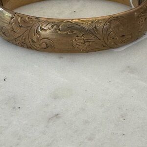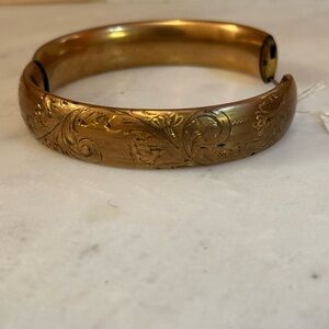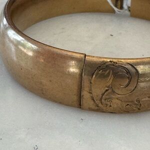 Vintage Gold Plate Bangle. Beautiful piece! Has slide bar for easy taking off and on.
