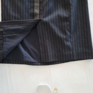 EUC Classy CLUB Monaco Women's Pin Stripe Wool Blend Black Leather Trim Skirt Size 4
