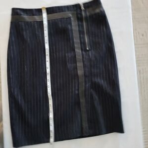 CLUB Monaco Women's Pin Stripe Wool Black Leather Trim Skirt Size 4