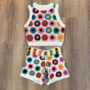 Farm Rio Crochet Sweater Set Sz L