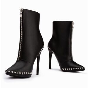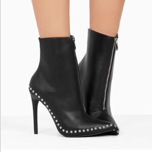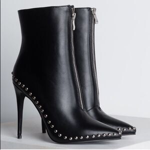 Black studded trim ankle booties