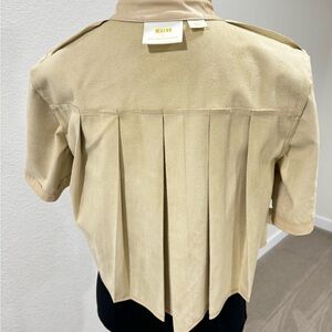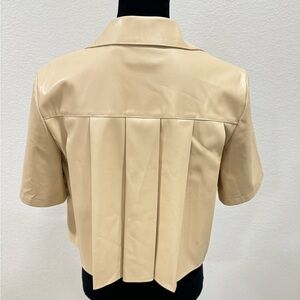Anthropologie Maeve Pleated Vegan Leather Short Sleeve Shirt