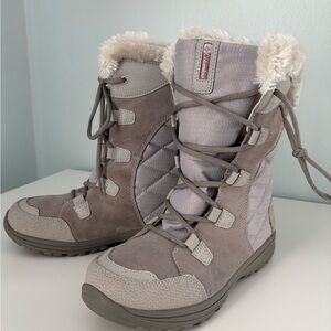 Panels are white with gray pattern, grommets are a dark silver gray metal.