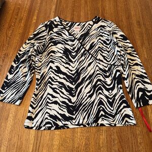 New with tags, this is a shoulder bag and crossbody purse (2 straps) by Jones New York. Faux leather. Front exterior zippered pocket. Back exterior zippered pocket. Interior zippered pocket and 2 interior slip-in pockets. Please see pics for measurements. Retails for $99.00.