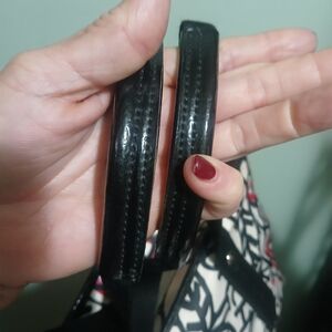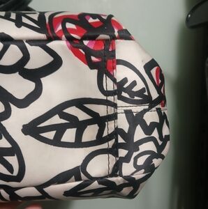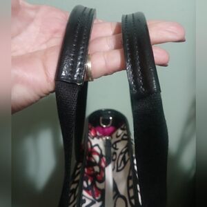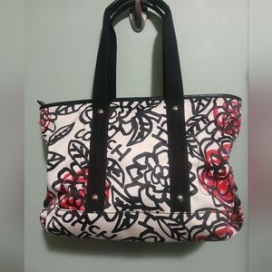EUC Coach Poppy Daisy Graffiti tote bag, very clean, limited edition, black/cream/rose, silver hardware, fuchsia interior, D rings for a shoulder strap (not included), patent leather trim, COA, minor spots on interior as shown