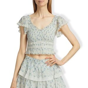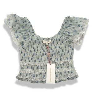 LOVESHACKFANCY Beaming Smocked Printed Cotton Top XS