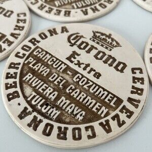 Corona Extra Beer Ceramic Stoneware Coasters w/h Holder Set of 5 Man Cave Decor
