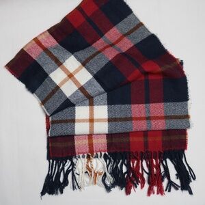 Old Navy Red Blue Plaid Tartan Winter Holiday Fringe Flannel Scarf One Size