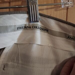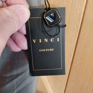 VINCI Italiana Collezione Men's Gray W/ white Pin Striped Squares, Pleated Pants