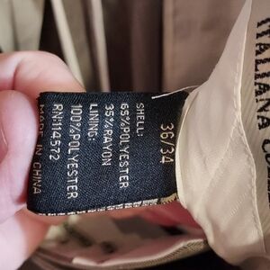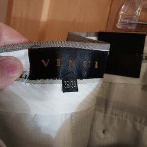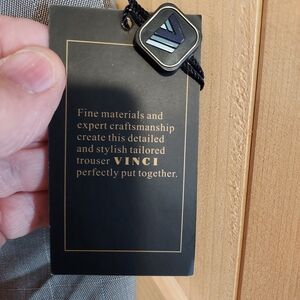 Elevate your business attire with these stylish VINCI Italiana Collezione men's pants. The gray polyester blend material features pin striped squares and a pleated front with cuffed hem for a classic look. The button closure and high rise waist provide comfort and a secure fit. These pants are perfect for any business occasion and are machine washable for easy care. The straight leg style and 34 inch inseam make them a versatile addition to any wardrobe. The couture theme and accents add a touch of sophistication to these dressy pants.