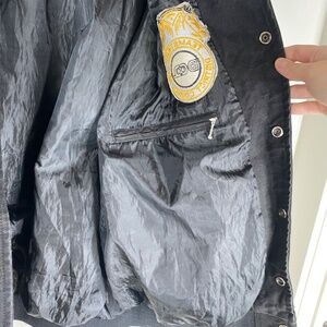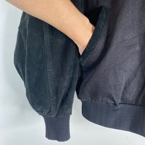 Vintage Teamsters Jacket 2XL XXL Black Suede Leather Sleeves Avon Coat Union USA