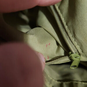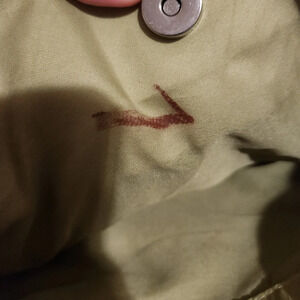 This is such a cute purse! It had plenty of room to store anything you would like to bring with you. It is approximately 10" tall by 15" wide. There are a couple marks on the inner lining of the purse as shown, but it is not visible on the outside of the purse. I am unsure of the brand.
